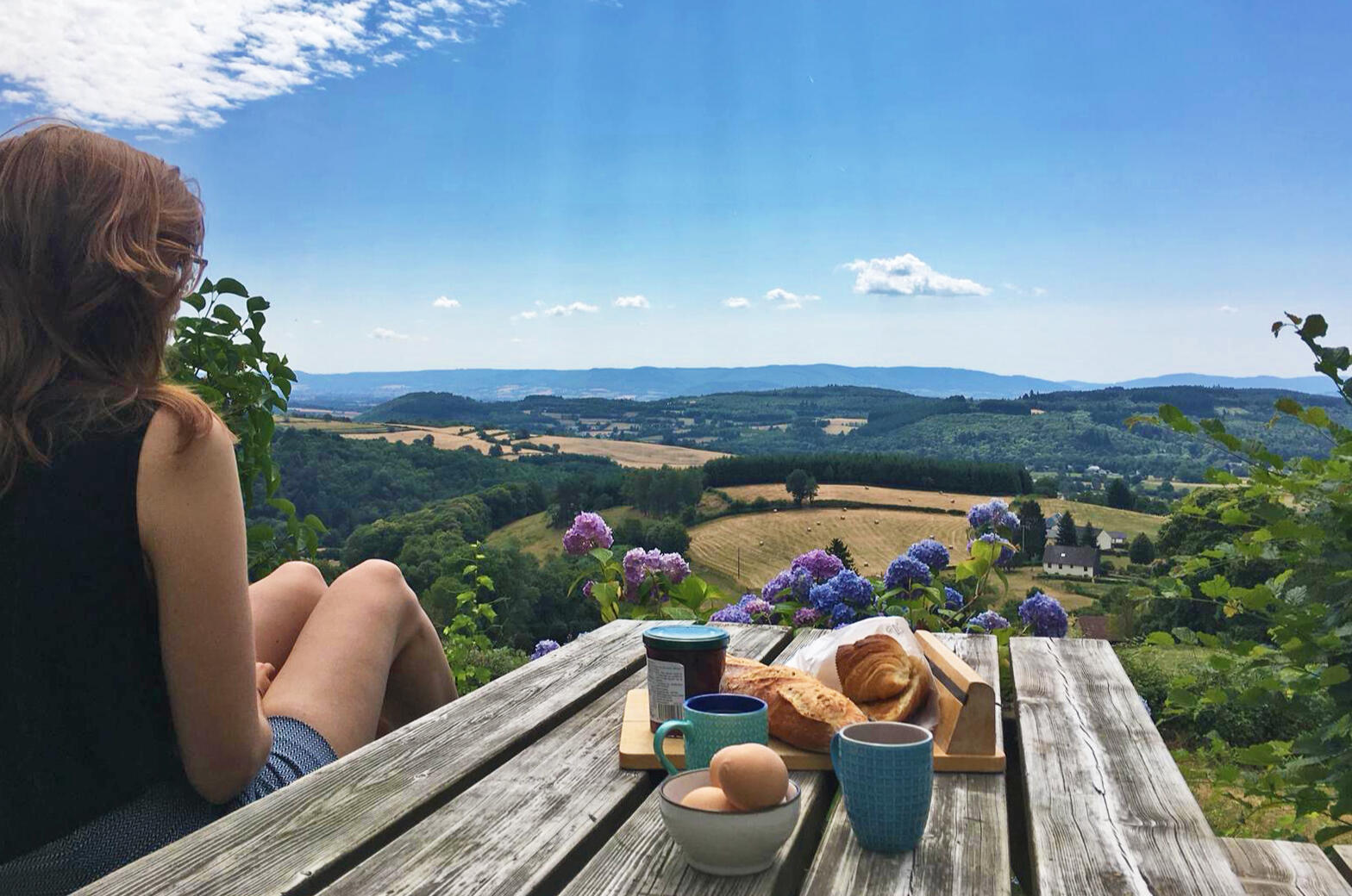 ’s Ochtends haalt u uw verse stokbrood en croissants in de boulangerie ‘Hotel de la Poste Chez Cécile’ in la Grande Verrière. Ontbijten aan de picknicktafel bij Maison Jeanne in de opkomende zon, fluitende vogels op de achtergrond: dat is genieten.